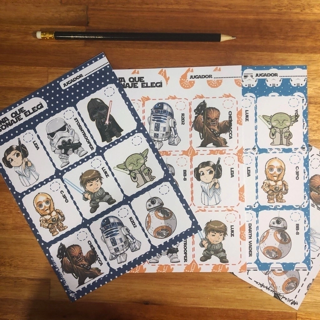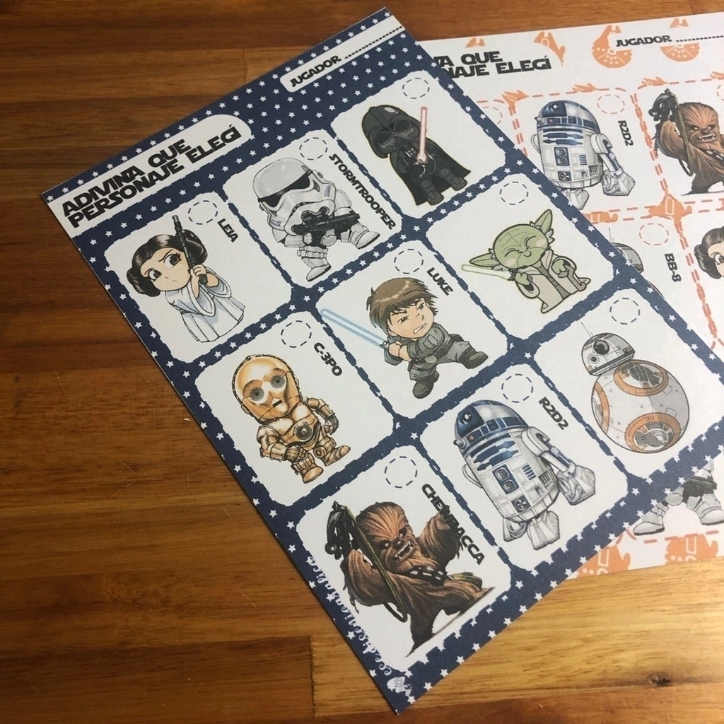 Consta de 4 tableros de 15 x 20 cm de 9 personajes cada uno, donde cada niño puede elegir su personaje y además dentro del mismo tablero, ir marcando aquellas opciones que sean descartadas acorde a las preguntas, de sus competidores.
