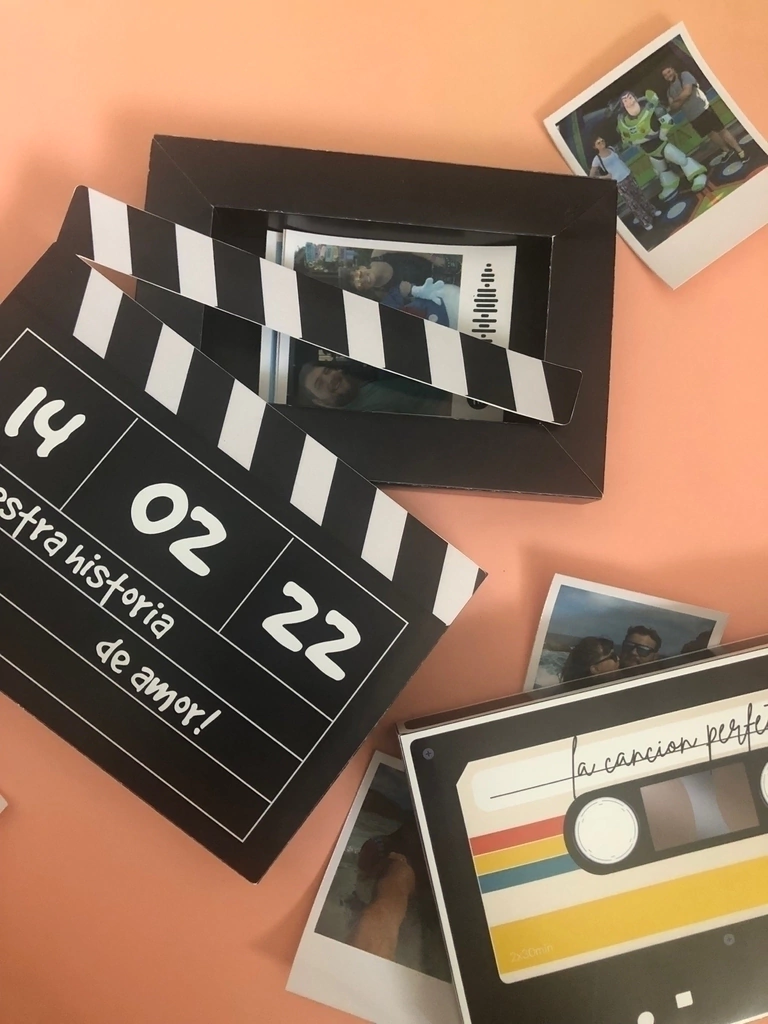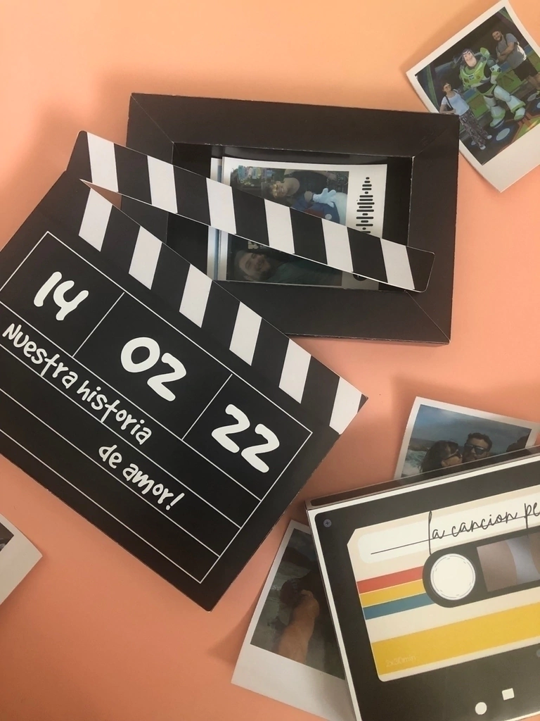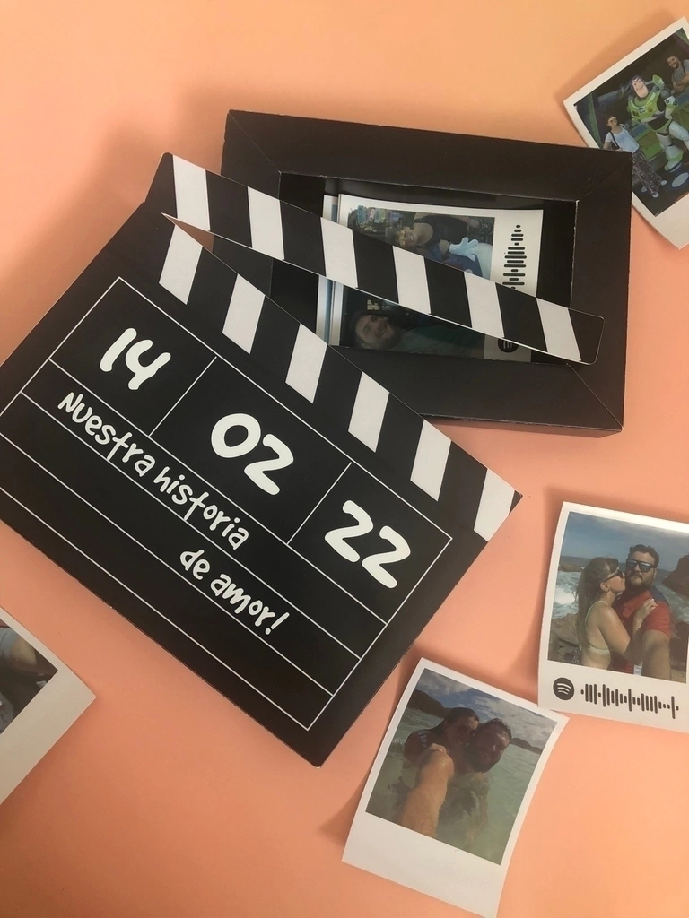 Opcional podes agregarle fotos tipo polaroid de 7x10 cm (Plancha x 8 fotos)
