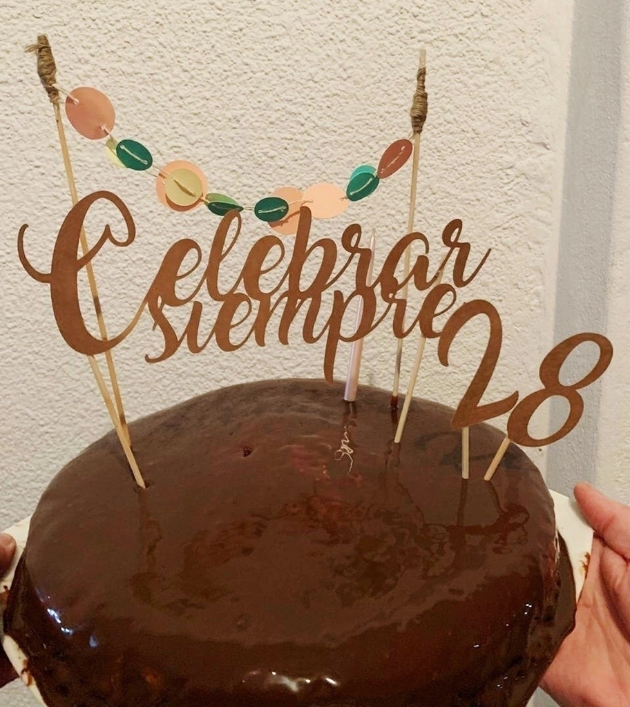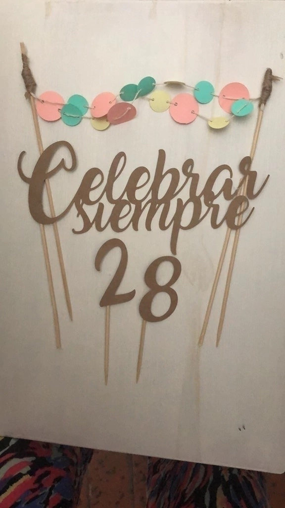 - Esta hecho papel krafts calado de 250 gr + un topper estilo guirnalda + números