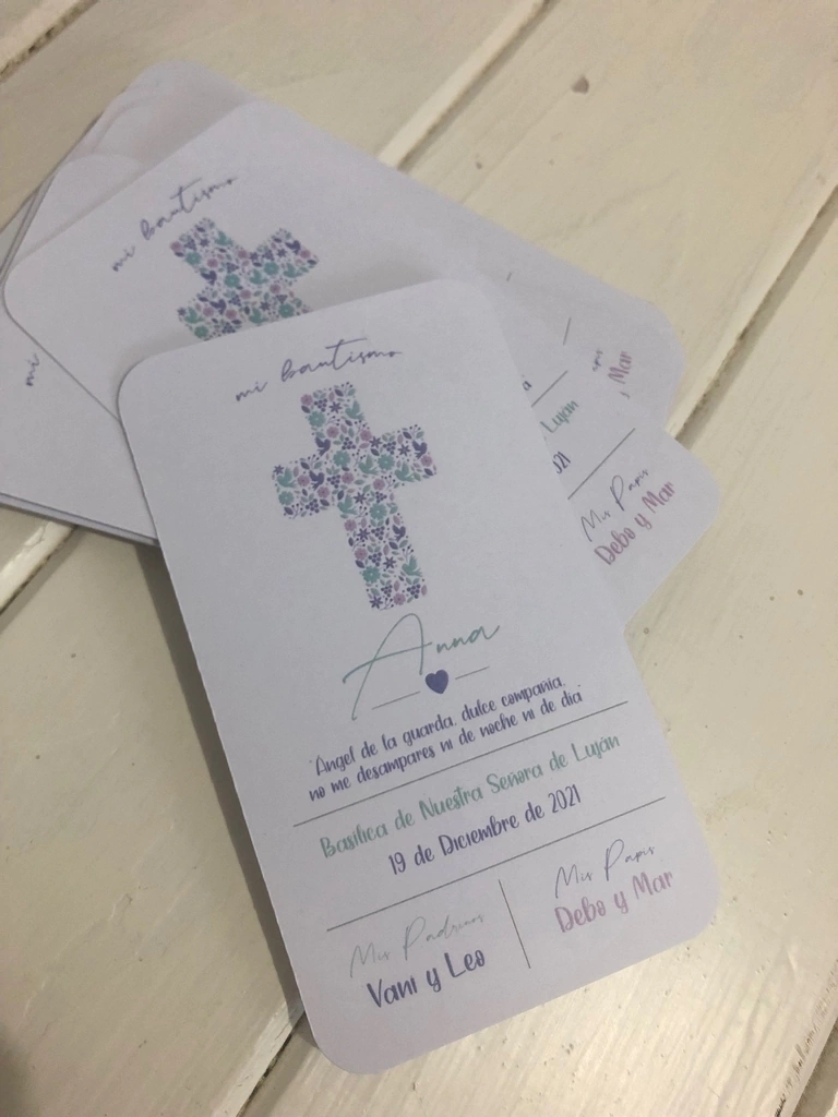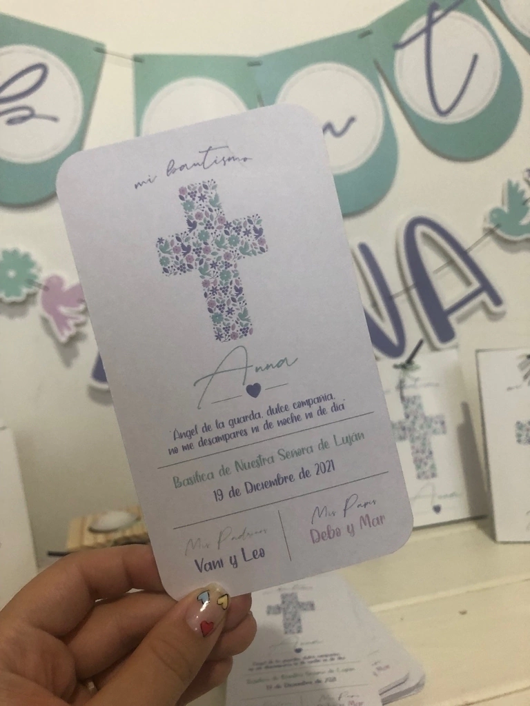 Tiene un tamaño de 8 cm x 14 cm aprox, realizada en cartulina de 300 gr.
