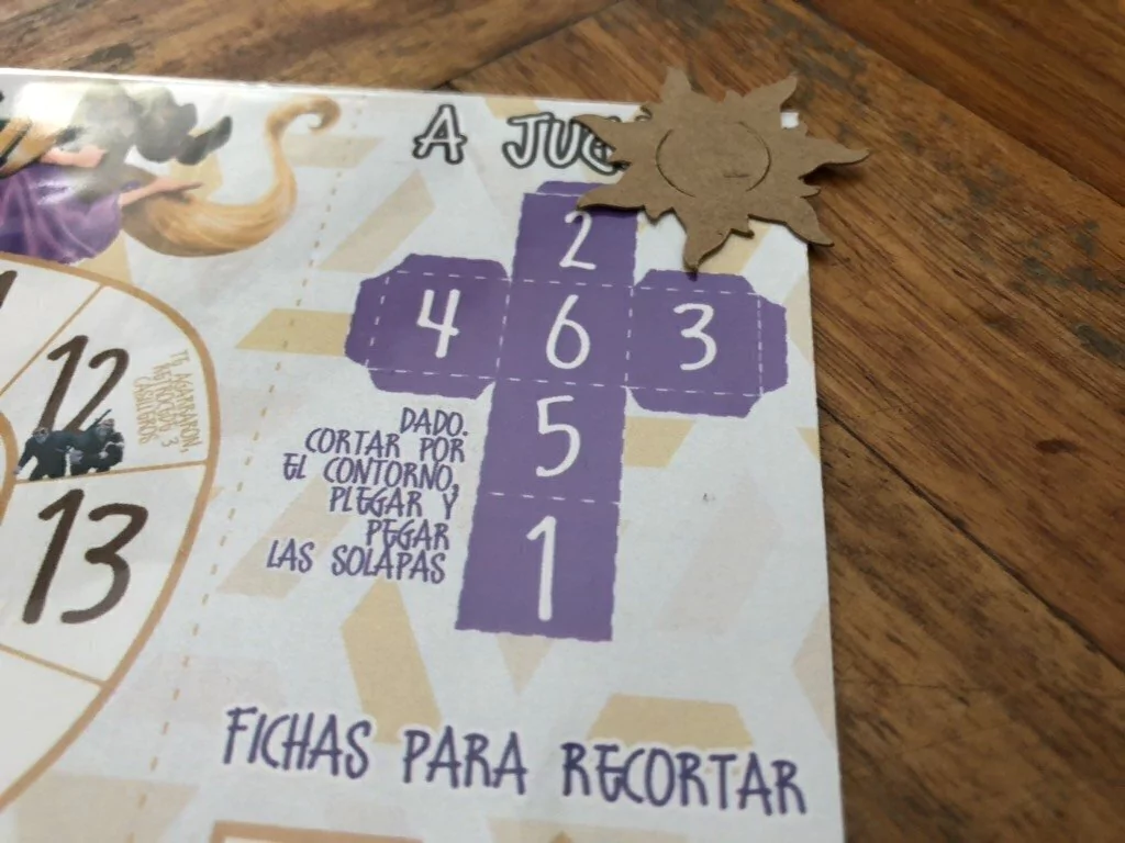 Consta de un tablero de 14x20 cm, impreso en papel ilustración de 3000 gr. Con el dado y fichas para recortar y armar, e instrucciones.