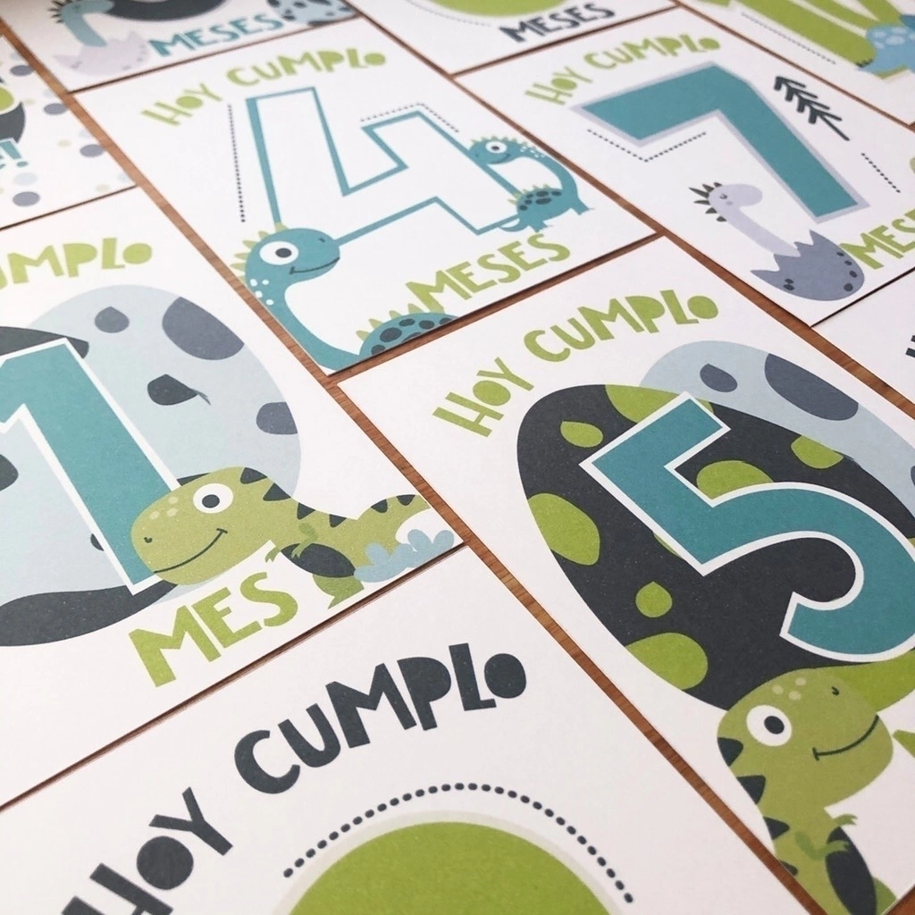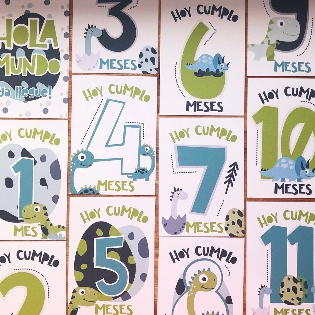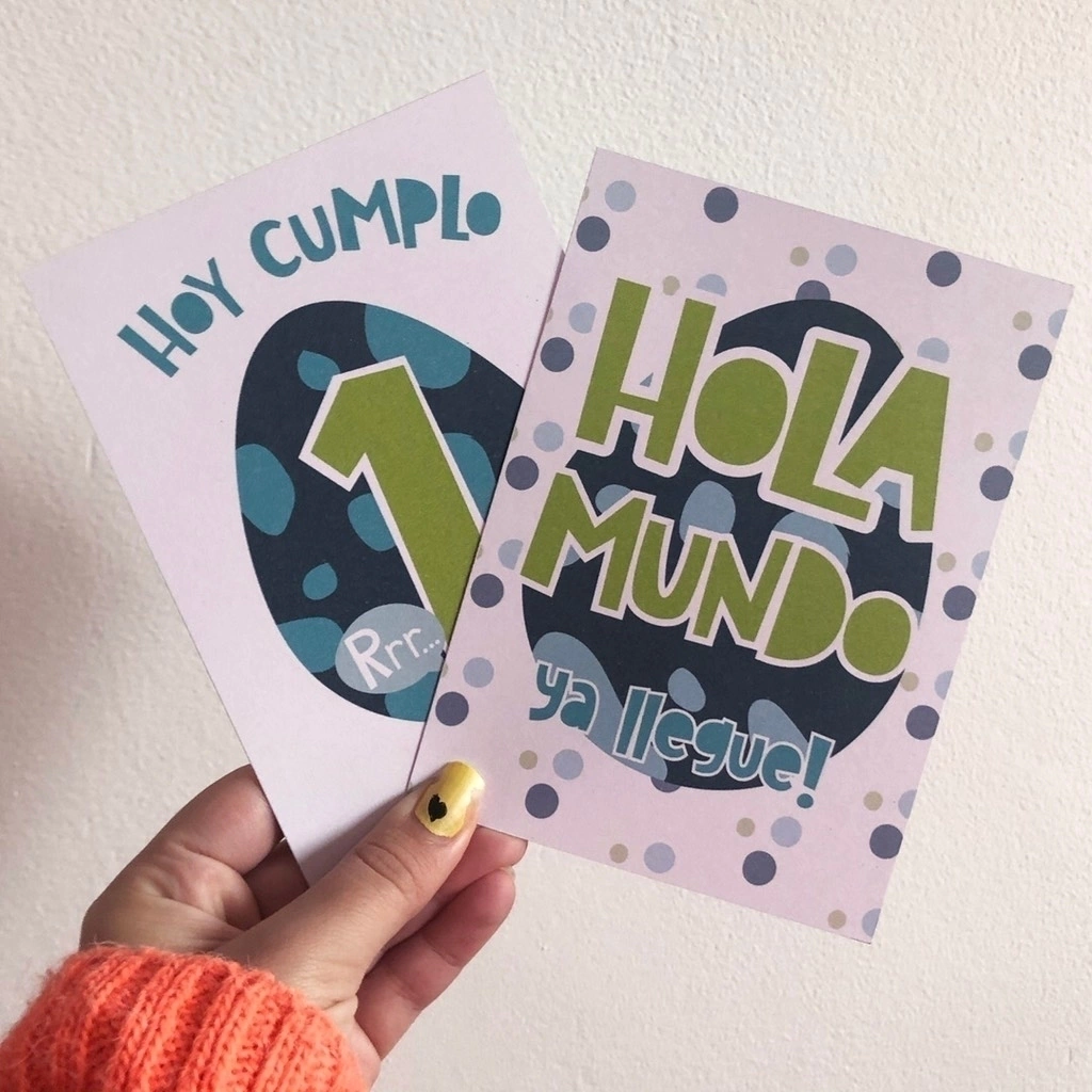 Consta de 16 tarjetones de 10x15 cm. (1 portada, 3 Hoy Cumplo semanas y 12 Hoy cumplo meses) impresos en cartulina de 250 gr
